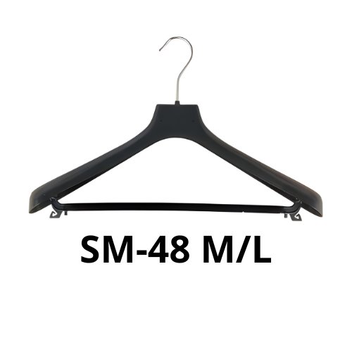 Deze zeer degelijke kostuumhanger is de perfecte hanger om uw kostuum keurig en stijlvol op te hangen. Dankzij de brede schouders van maar liefst 7 cm blijft de schouderpartij van uw kleding perfect in zijn vorm. De stevige broeklat met zwart antislip schuim zorgt ervoor dat uw broek niet verschuift en perfect in de plooi blijft. Strakke zwarte afwerking voor een professionele uitstraling. Deze mooie kledinghanger van 48 cm breed is bij uitstek geschikt voor de grotere kledingmaten.